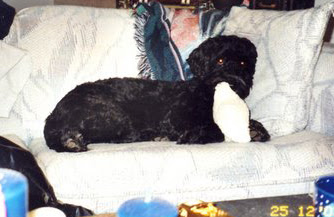 Thank you for sharing the pics of past Christmases. Loved them all. I (Ernie)especially liked the last one with the ribbons around the little one cuz it looks just like me!! I was told I am a Schnoodle but some think I am a Portie. Whatever... M & D think I am pretty special no matter what I am.